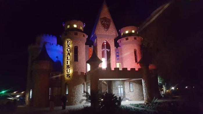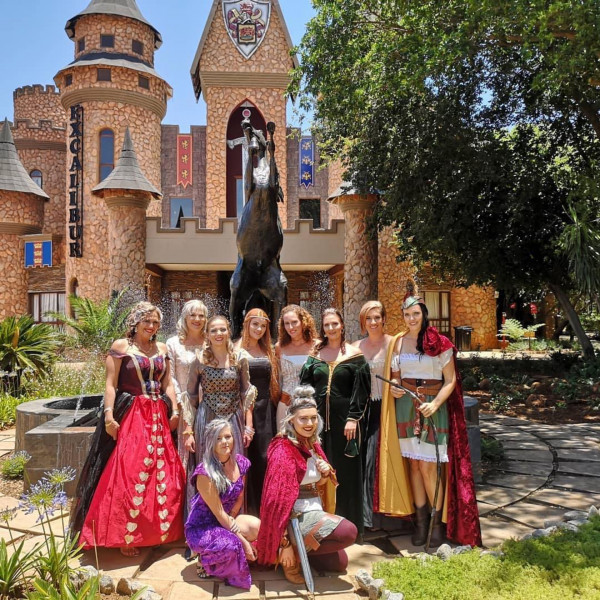 A one of a kind Medieval Castle. Set in the style of King Arthur and Guinevere, with knights roaming to serve you with delicious food and beverages. Be treated as a King or Queen inside the Castle Great Hall or sit next to the river Avalon outside in our forest themed garden.