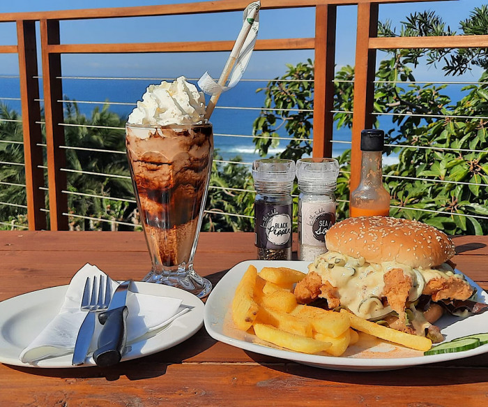 The restaurant’s unique location allows you to immerse yourself in the stunning natural beauty of the KZN South Coast. The wraparound deck boasts exquisite coastal forest and ocean views. Keep an eye out for the diverse wildlife that often graces the area, including various bird species and the occasional dolphin playing in the waves.