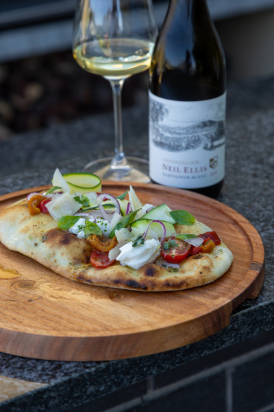 Visit the tasting room and experience a curated tasting of three wines, each paired with a section of flatbread thoughtfully crafted to complement its character. A single base becomes three distinct expressions, designed to enhance and elevate every sip.