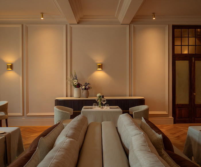 Guests are welcomed into an ambiance of understated elegance, where sophistication meets a warm, unpretentious charm. Created by the acclaimed interior design team at Bone Studio, the space embodies a vision befitting its flagship status: striking murals, bespoke art installations and floral table accents, crafted from indigenous elements, engage all the senses and reflect the restaurant’s inventive spirit.