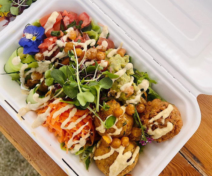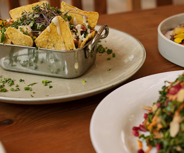 Leafy Greens serves hand picked, fresh produce that comes straight out of our organic gardens, daily. Our motto is to prepare and serve nutritious and delicious seasonal, organic & local food from Farm to Table.