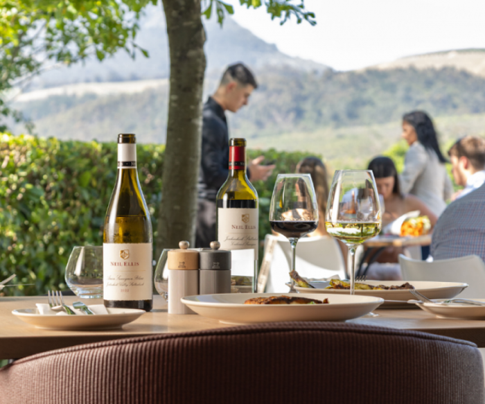 Welcome to the newly reimagined Neil Ellis Wines Tasting Room and Restaurant, where fine wine, seasonal cuisine, and breathtaking mountain views come together in perfect harmony.