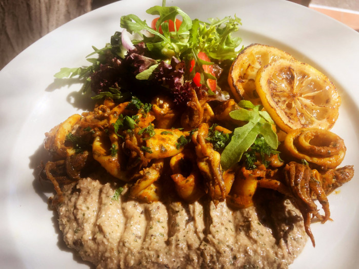 The menu presents a seasonal selection of Global Tapas and a wide variety of dishes ranging from mouth-watering Salads, Gourmet Burgers, fresh Seafood, mature Prime Steaks and Moroccan and Mediterranean Specialties - "we serve Comfort food"