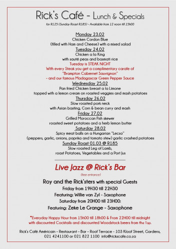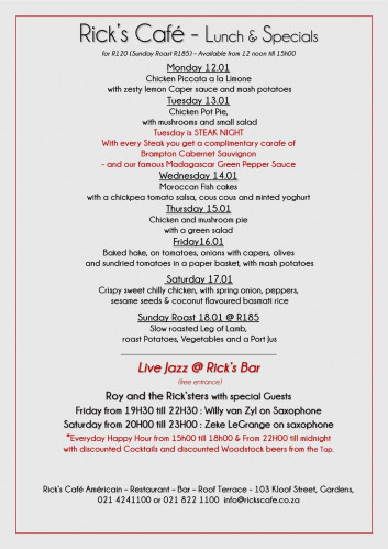 First Floor & Balcony - Rick’s Restaurant – 11H00 till 23H00
