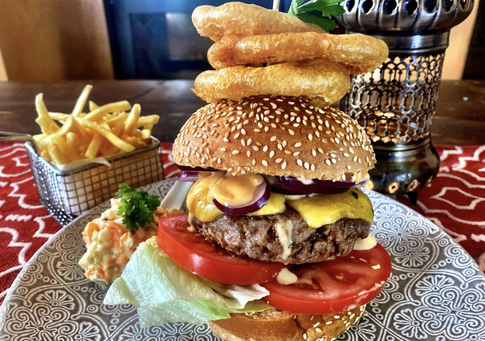 The menu presents a seasonal selection of Global Tapas and a wide variety of dishes ranging from mouth-watering Salads, Gourmet Burgers, fresh Seafood, mature Prime Steaks and Moroccan and Mediterranean Specialties - "we serve Comfort food"
