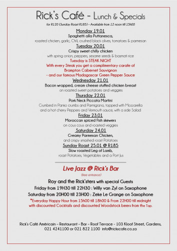 First Floor & Balcony - Rick’s Restaurant – 11H00 till 23H00