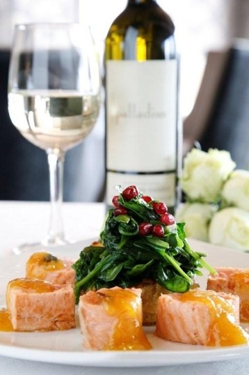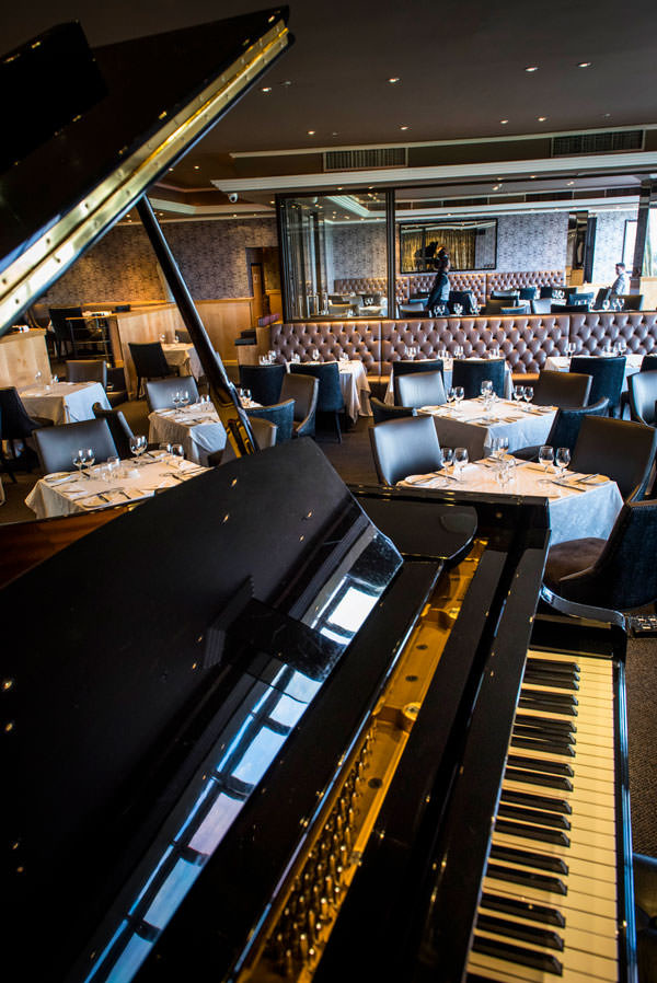 Diners can enjoy the plush décor with floor to ceiling windows creating an openness allowing natural light to stream in during the day and offering spectacular views of sunsets and night lights in the evening. This is the perfect place to meet with friends and sip on evening cocktails and watch the sun going down in the distance.