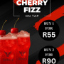 Cherry Fizz is on tap at Barraca! Get one for R55 or grab two for R90. The drink's served in icy glass with cherries on top - A refreshing deal!